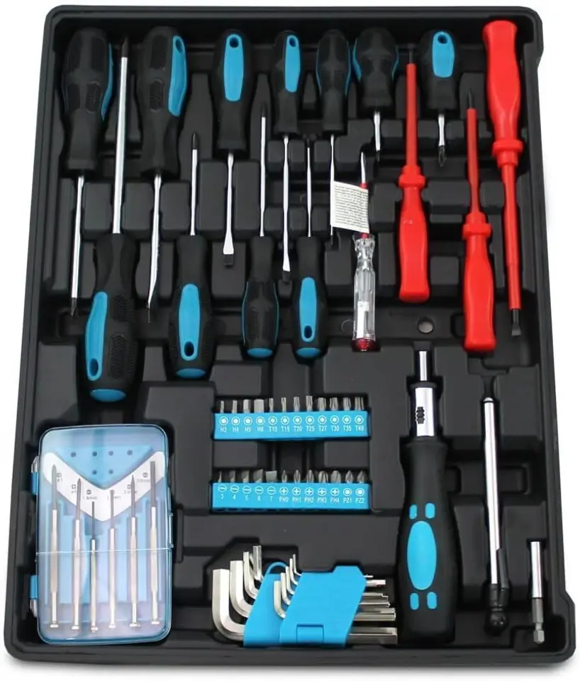 - Zestaw zawiera większość typowych narzędzi do codziennego użytku w domu, garażu, jak i w warsztacie.