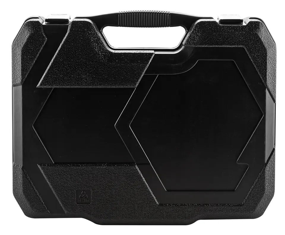 Zestaw narzędzi 143 szt.: grzechotki 2 szt. rozmiar 1/2, 1/4; nasadki krótkie rozmiar 1/2" 15szt. : 10,11,12,13,14,15,16,17,18,19,20,21,22,24,27mm; rozmiar 1/4" 7 szt.: 8,9,10,11,12,13,14; przedłużka 2 szt. rozmiar 1/2" : 125 mm, 250 mm, rozmiar 1/4": 50 mm; przegub 1/2", 1/4"; nasadki do świec: 16 , 21 mm; bity 1/4" 76 szt.; Pokrętło 1/4"; wkrętak do nasadek 1/4"; redukcja do bitów 1/4" x HEX 1/4"; klucze płasko oczkowe 12 szt.: 8,9,10,11,12,13,14,15,16,17,18,19 mm; klucze HEX 9 szt.: 1.5, 2, 2.5, 3, 4, 5, 6, 8, 10 mm; wkrętaki płaskie FD5x38mm, FD6x100mm; wkrętaki PH1x38mm, PH2x100mm, PH2x150mm; szczypce uniwersalne 160 mm; szczypce boczne 160 mm; szczypce do rur 250 mm; młotek 500 g; chwytak magnetyczny 160 - 610 mm; klucz nastawny 300 mm.