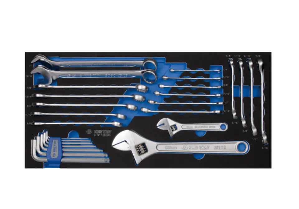 ZESTAW NARZĘDZI 26cz. KLUCZY CALOWYCH + KLUCZE NASTAWNE 6" ORAZ 12", WKŁAD Z PIANKI EVA DO SKRZYNKI King Tony