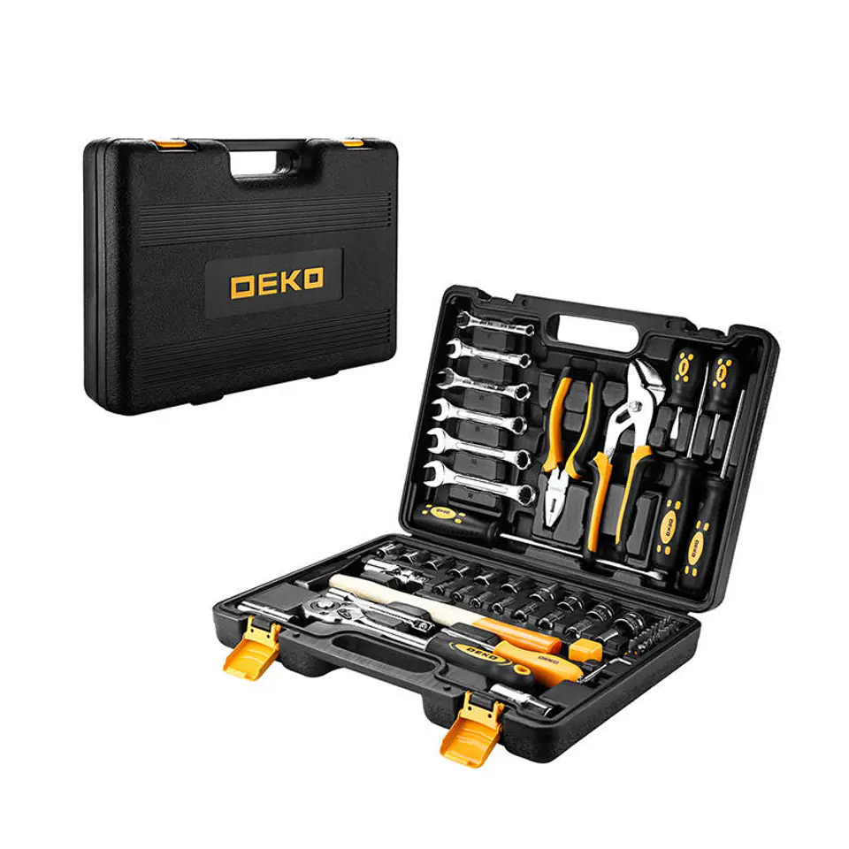 Wyposaż się w praktyczny zestaw narzędzi, który sprawdzi się w wielu różnych sytuacjach. Deko Tools DKMT63 zawiera 63 elementy, a poręczna skrzynka, w której zostały one umieszczone, zapewnia bezproblemowy transport. Wśród produktów znajdziesz m.in. młotek mechaniczny, uchwyt nasadek ¼”, klucz grzechotkowy ½”, kombinerki, szczypce do pomp wodnych i wiele innych, praktycznych narzędzi.