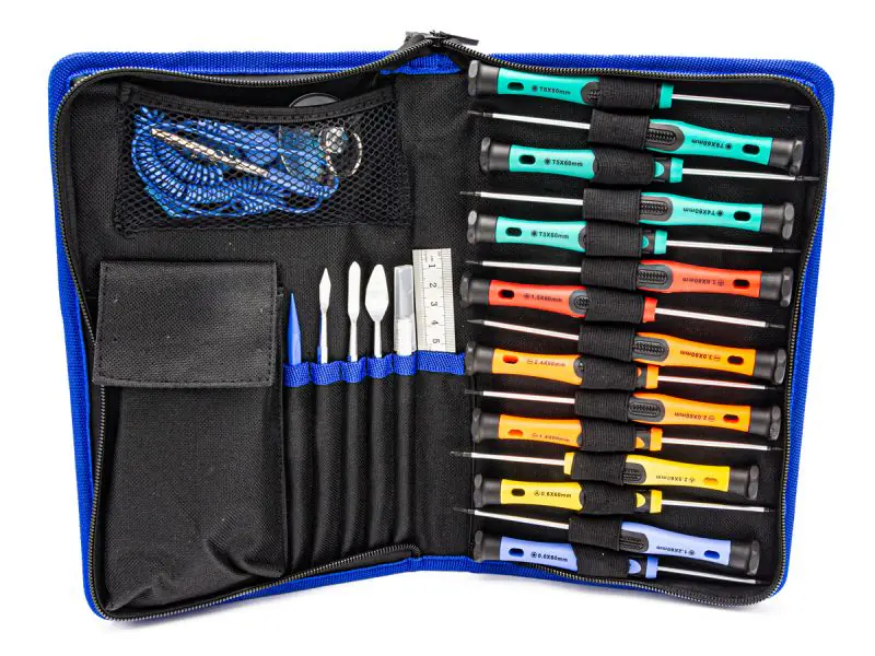 Prezentujemy rewelacyjny zestaw praktycznych, precyzyjnych narzędzi. Zestaw dedykowany dla wymagających majsterkowiczów. Oprócz najpotrzebniejszych końcówek w zestawie znajduje się również skalpel, pęsety oraz końcówki do zdejmowania obudowy. Przyda się każdemu, kto będzie chciał wymienić wyświetlacz, głośniczek lub inny podzespół swojego telefonu lub rozebrać laptopa. Wkrętaki pasują do śrubek i wkrętów używanych w urządzeniach elektronicznych.