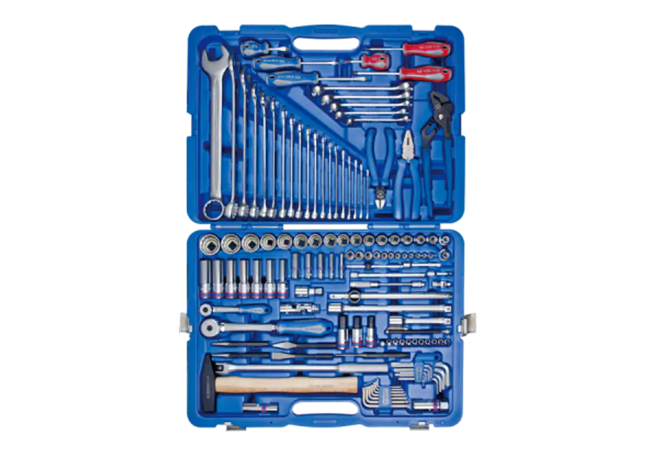 ZESTAW NARZĘDZI KING TONY, NASADKI, BITY, WKRĘTAKI, KLUCZE, SZCZYPCE, MŁOTEK 128 cz. W WALIZCE King Tony