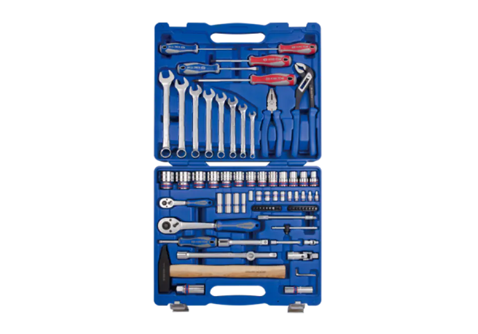 ZESTAW NARZĘDZI KING TONY, NASADKI, BITY, WKRĘTAKI, KLUCZE, SZCZYPCE, MŁOTEK 77 cz. W WALIZCE King Tony