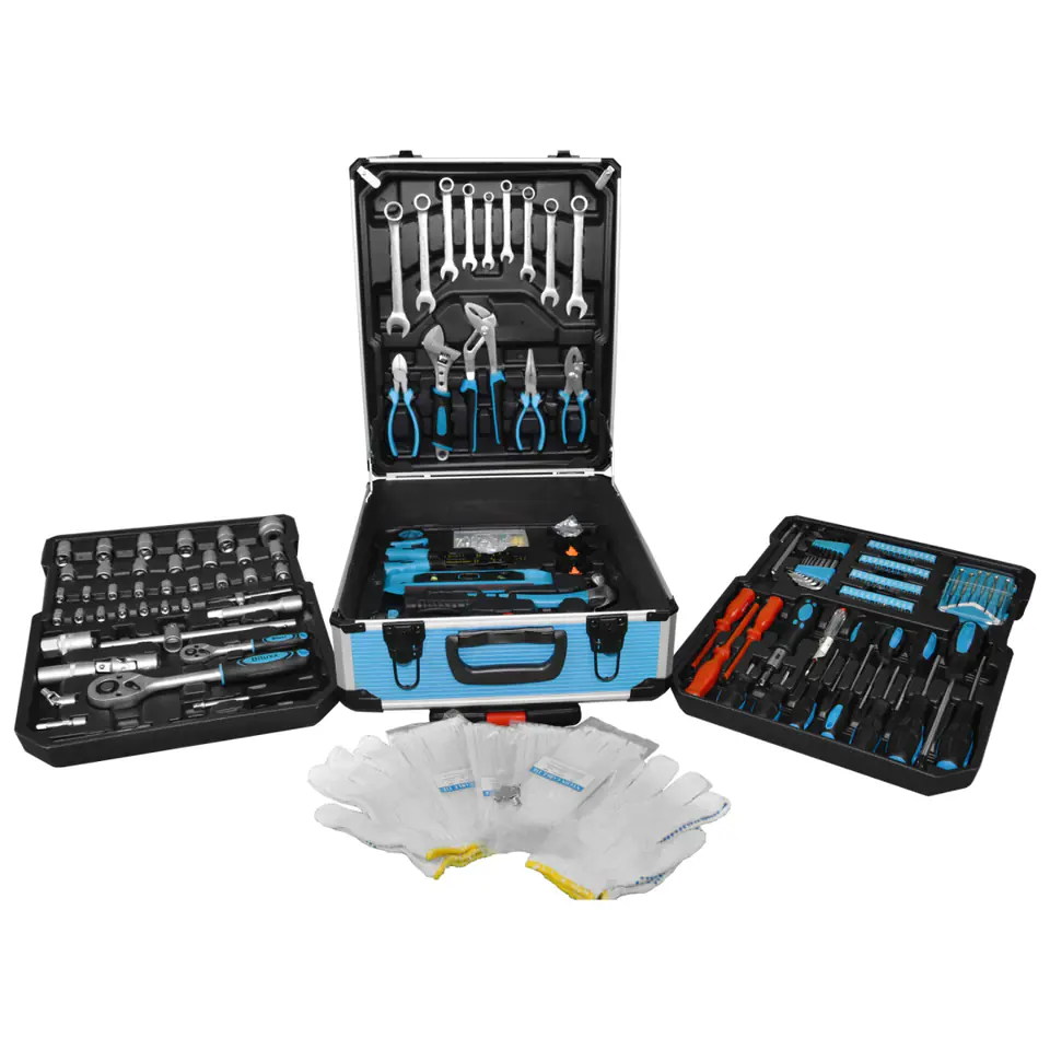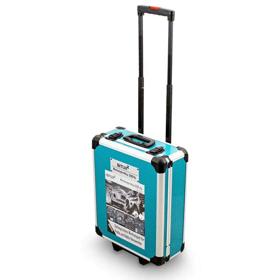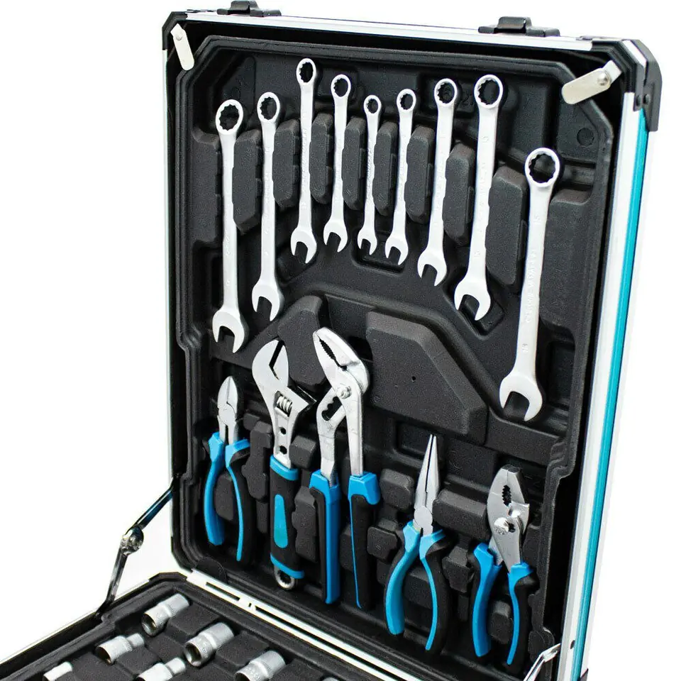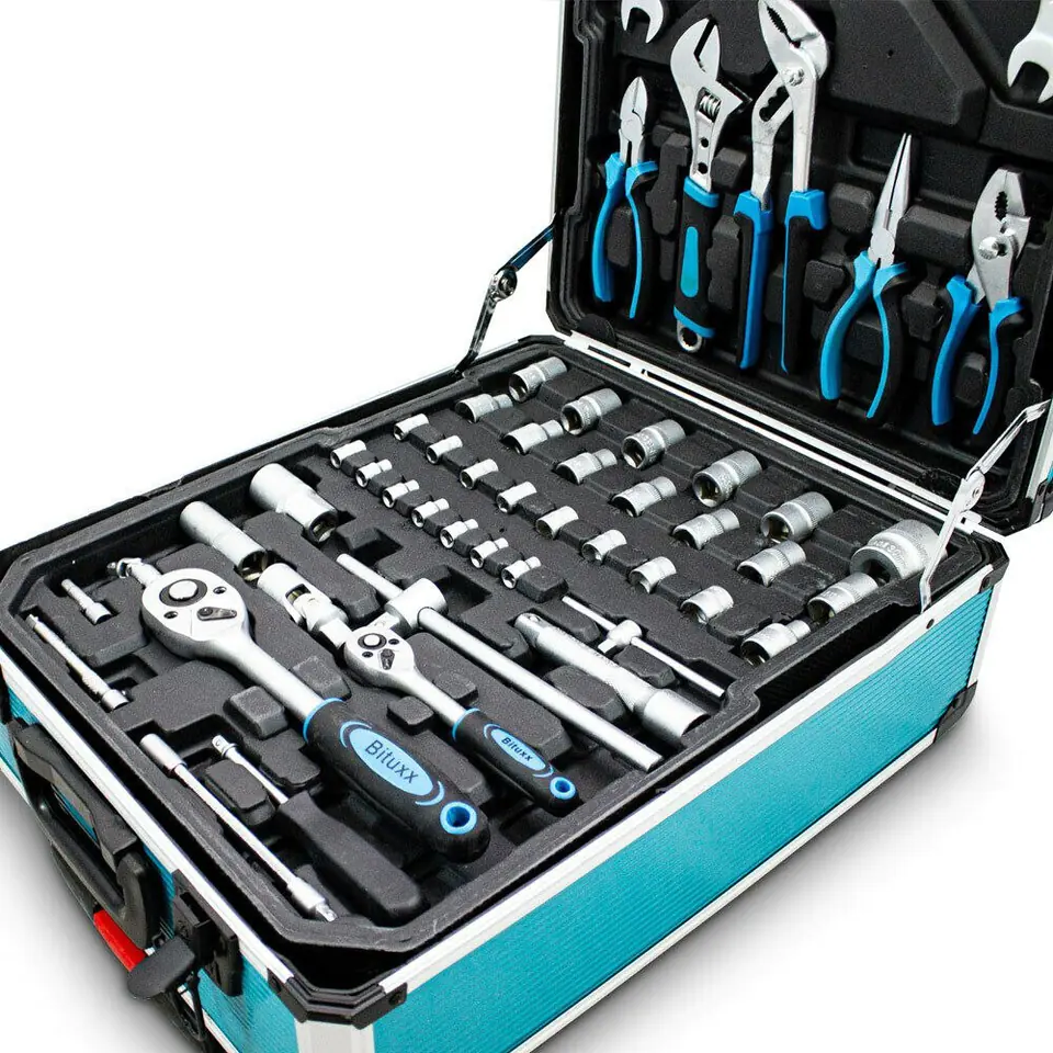Wysokiej jakości zestaw narzędzi w walizce to must have w Twoim garażu. Nada się zarówno dla majsterkowiczów jak i profesjonalistów. Aż 1200 elementów mieści się w mobilnej walizce na kółkach, dzięki której z łatwością przewieziesz narzędzia w odpowiednie miejsce. Klucze rozmieszczone są w czterech, wyjmowanych pojemnikach, dzięki czemu szybko i łatwo znajdziesz pożądane narzędzie. Wszystkie narzędzia wykonane są z wysokiej jakości stali chromowo-vanadowej.