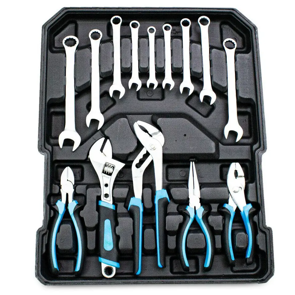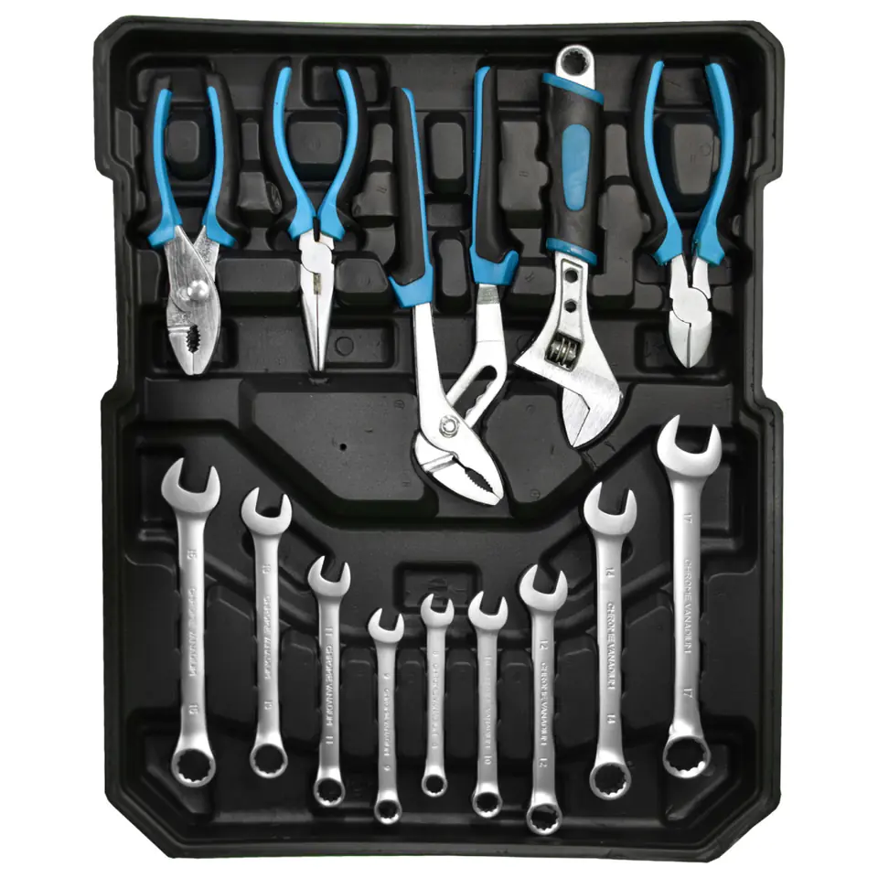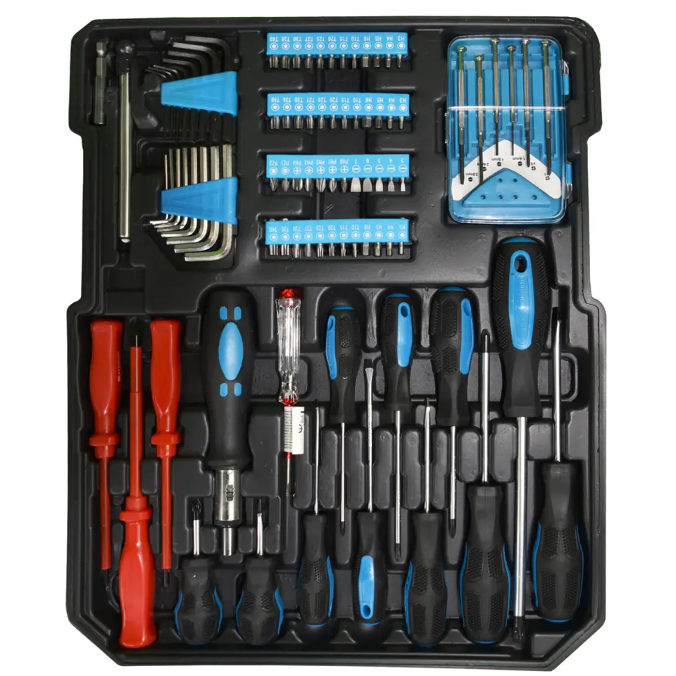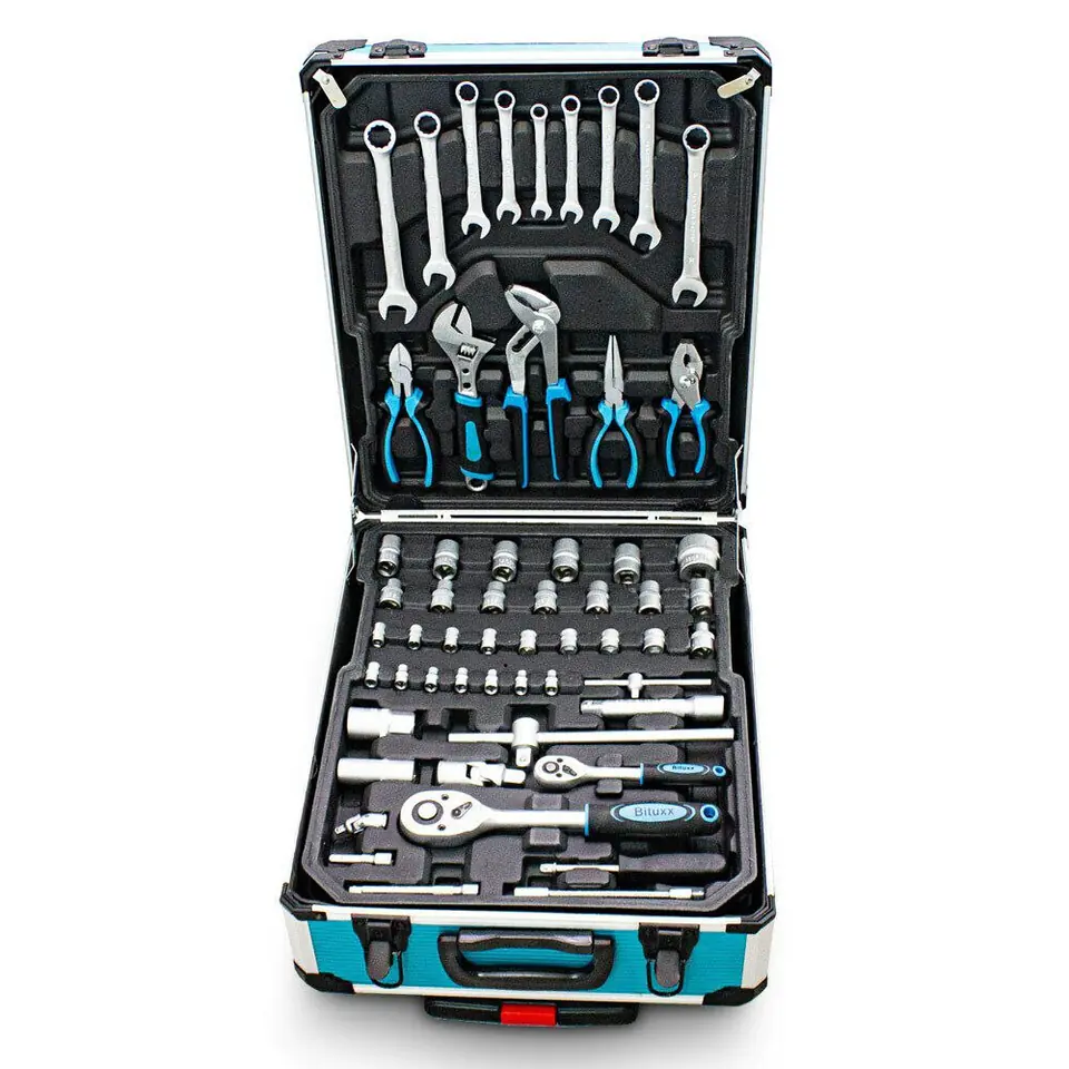 Wysokiej jakości zestaw narzędzi w walizce to must have w Twoim garażu. Nada się zarówno dla majsterkowiczów jak i profesjonalistów. Aż 1200 elementów mieści się w mobilnej walizce na kółkach, dzięki której z łatwością przewieziesz narzędzia w odpowiednie miejsce. Klucze rozmieszczone są w czterech, wyjmowanych pojemnikach, dzięki czemu szybko i łatwo znajdziesz pożądane narzędzie. Wszystkie narzędzia wykonane są z wysokiej jakości stali chromowo-vanadowej.