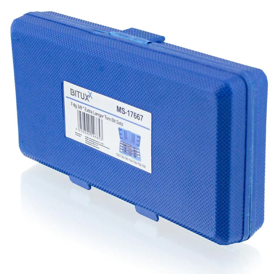 Zestaw kluczy nasadowych TORX 3/8 cala, składający się z 7 elementów uporządkowanych w wygodnej i trwałej walizce wykonanej z tworzywa sztucznego . Wszystkie elementy zestawu wykonane są z wysokiej jakości stali narzędziowej, jaką jest stal chromowo-wanadowa. Stal ta zapewnia długoletnią żywotność Twoich kluczy. W komplecie znajdują najbardziej popularne rozmiary kluczy nasadowych TORX.