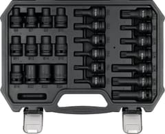 Zestaw narzędzi udarowych 1/2" (12,7 mm) składający się z 25 elementów to praktyczny komplet do prac warsztatowych i serwisowych.