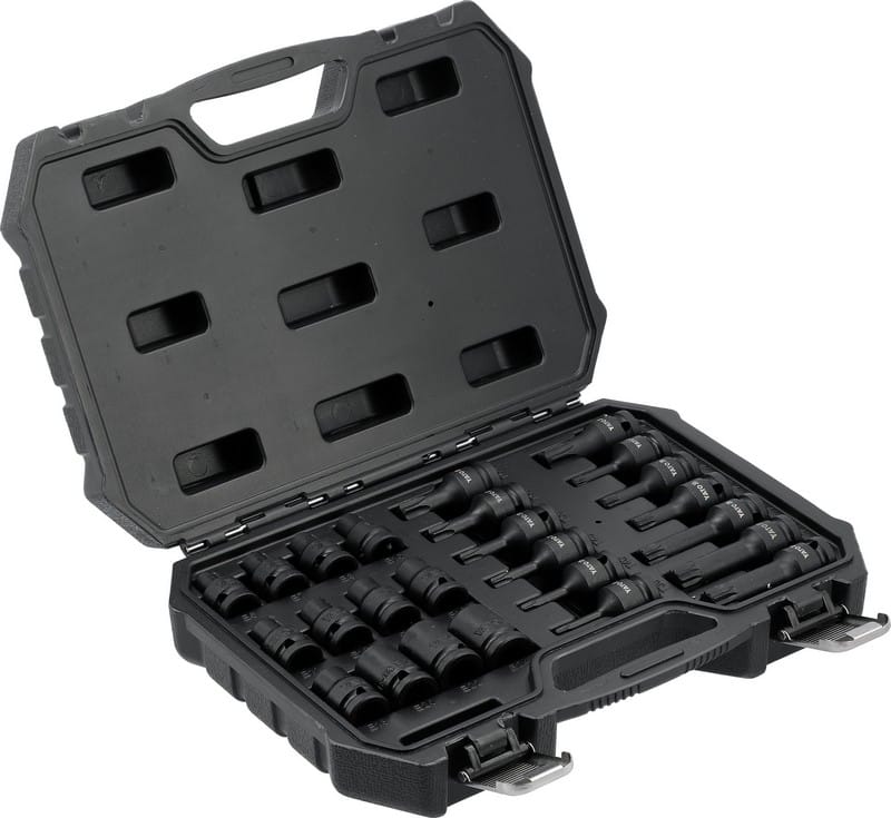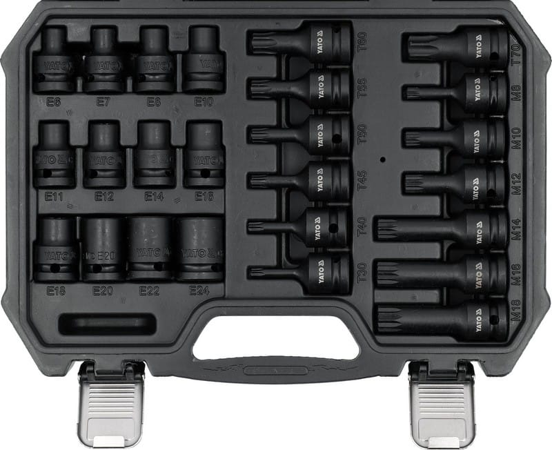12 nasadek udarowych E-Torx: E6, E7, E8, E10, E11, E12, E14, E16, E18, E20, E22, E24