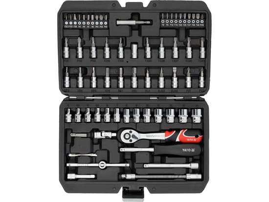 Zestaw narzędziowy składajacy się z 68 elementów przystosowanych do pracy w serwisach samochodowych, serwisach mechanicznych, przemysłowych i gospodarstwach domowych.