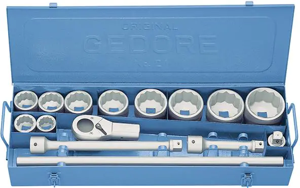 Wykonanie: narzędzia ze stali wanadowej 31CrV3 GEDORE, odkuwane, szlifowane i chromowane. Dostawa w kasecie z blachy stalowej GEDORIT.