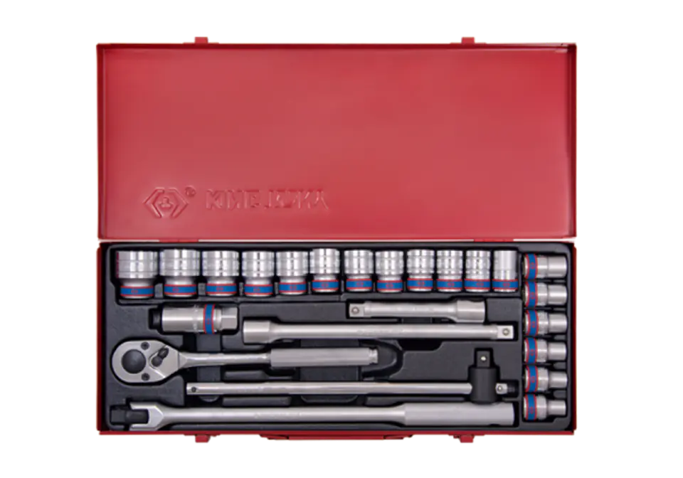 ZESTAW NASADEK 1/2", 24cz. KRÓTKIE 6-kąt. 10 - 32mm Z GRZECHOTKĄ I AKCESORIAMI, KASETA King Tony