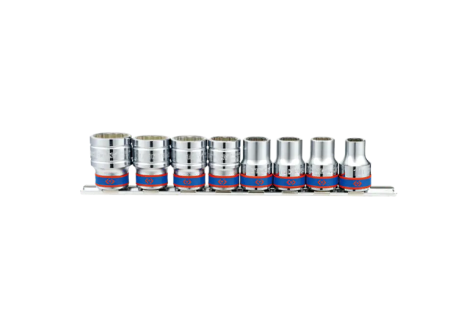 ZESTAW NASADEK 1/2" 8cz. KRÓTKIE 6-kąt. 10 - 22mm, SZYNA King Tony