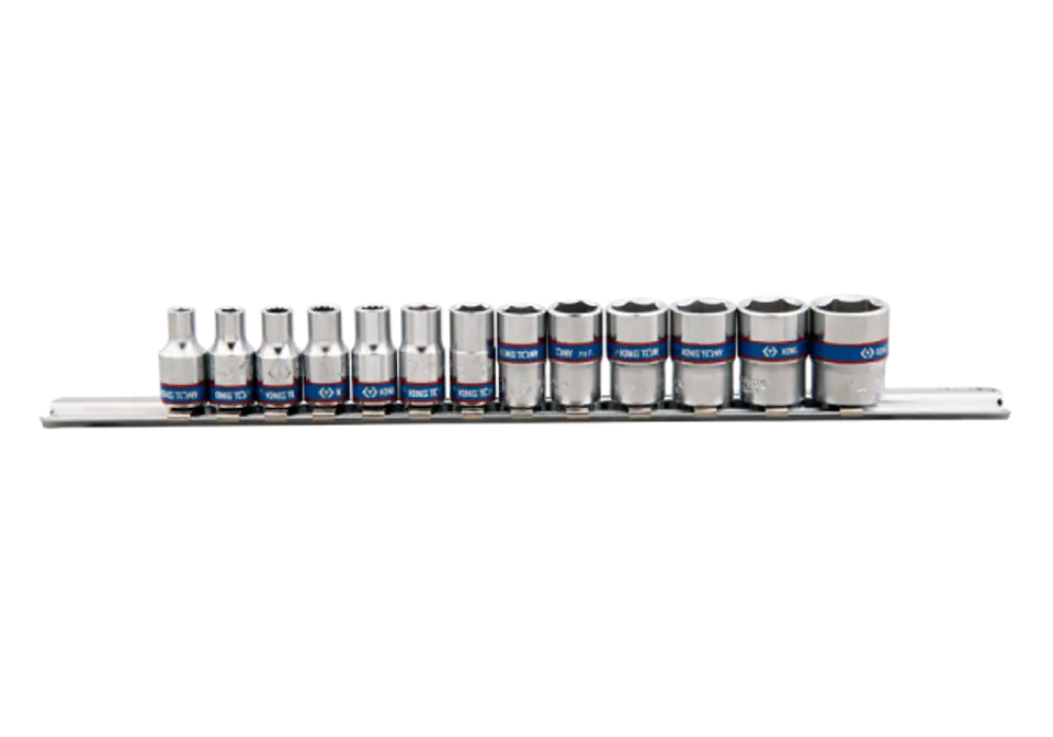 ZESTAW NASADEK 1/4" 13cz. KRÓTKIE, 6-kąt. 4 - 14mm, SZYNA King Tony