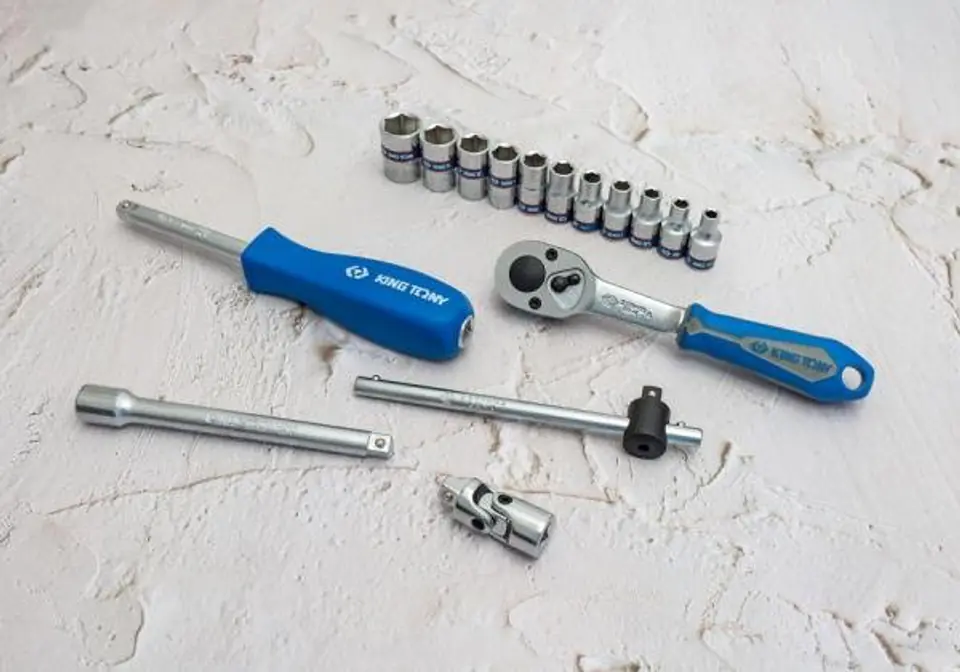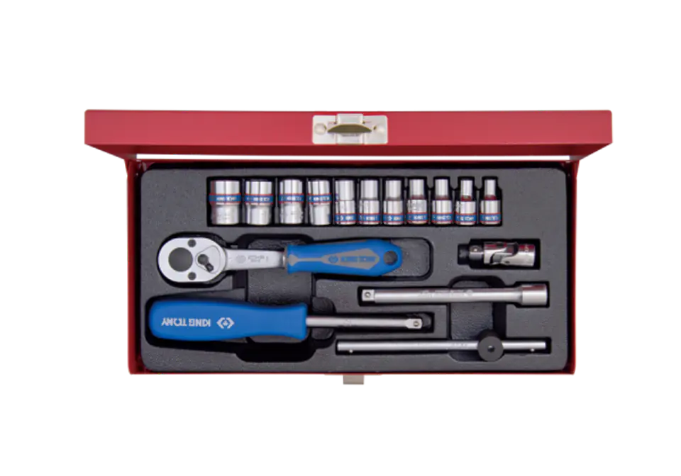 ZESTAW NASADEK 1/4" 16cz. KRÓTKIE 6-kąt. 4 - 13mm Z GRZECHOTKĄ I AKCESORIAMI, KASETA King Tony