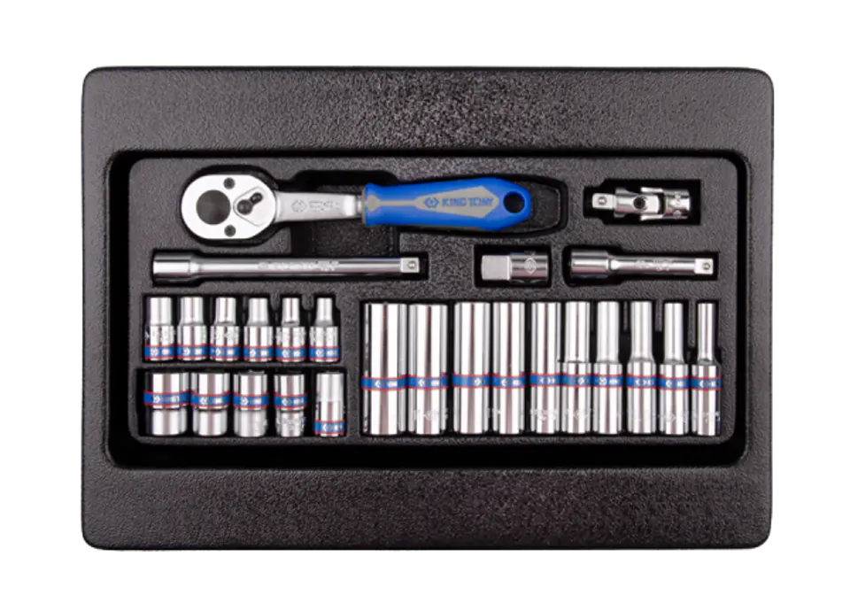 ZESTAW NASADEK 1/4" 26cz. KRÓTKIE / DŁUGIE, 6-kąt. 4 - 13mm Z AKCESORIAMI, WKŁAD DO WÓZKA King Tony