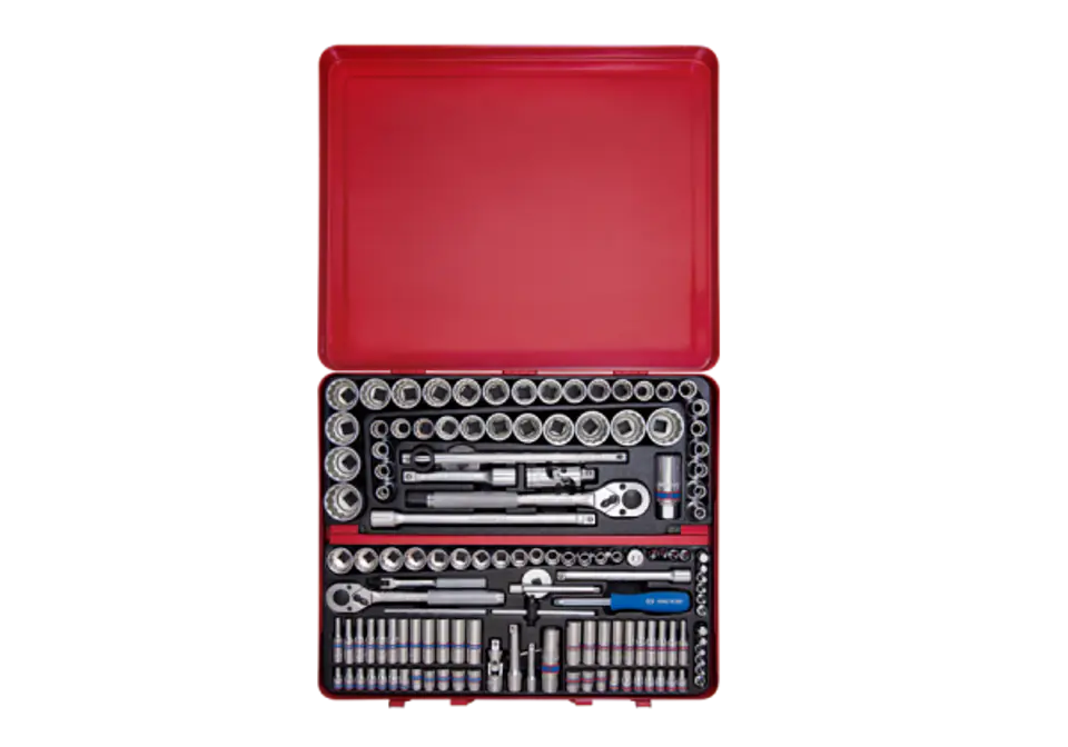 Zestaw nasadek 1/4" + 3/8" + 1/2" 135cz. 4 -32 mm + calowe 5/32 - 1.1/4" 6/12-kąt. chrom + akcesoria, box Karta produktu - 9033CR