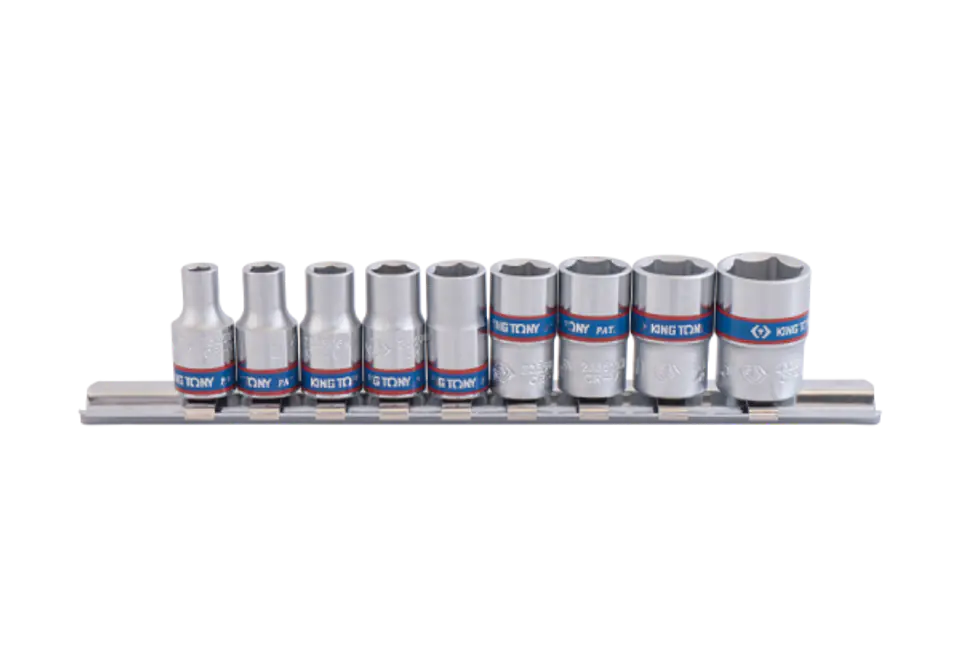 ZESTAW NASADEK 1/4" 9cz. KRÓTKIE, 6-kąt. 4 - 13mm, SZYNA, King Tony
