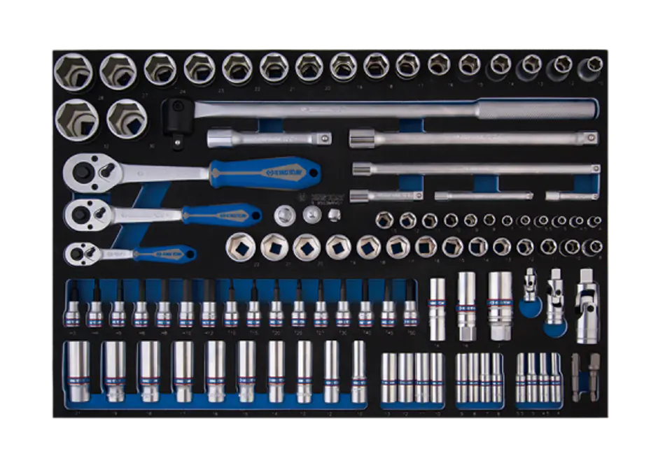 ZESTAW NASADEK 1/4"+3/8"+1/2" 103cz. 6-kąt. 4 - 32mm Z AKCESORIAMI, WKŁAD Z PIANKI, DO WÓZKA King Tony