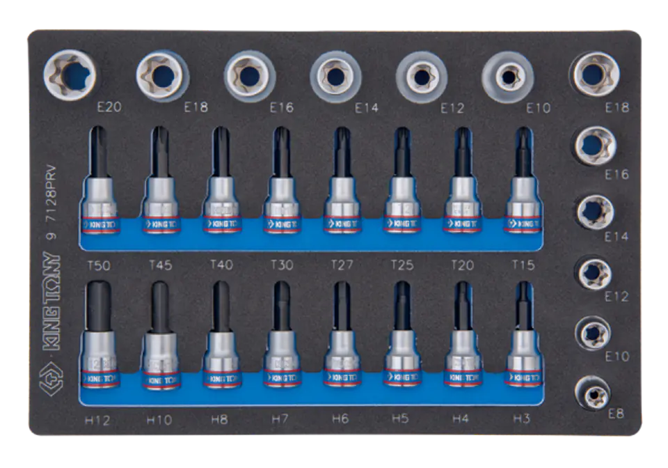 ZESTAW NASADEK 3/8" + 1/2", HEX H3 - H12, TORX T15 + T50, GWIAZDKI E8 - E20, WKŁAD Z PIANKI, DO WÓZKA King Tony