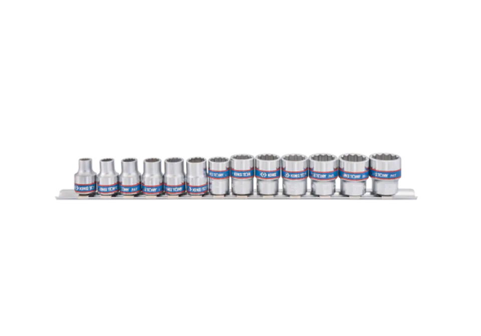 ZESTAW NASADEK 3/8" 13cz. KRÓTKIE 12-kąt. 7 - 19mm, SZYNA, King Tony