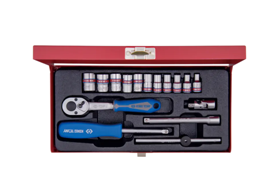 ZESTAW NASADEK CALOWYCH 1/4" 16cz. KRÓTKIE 6-kąt. 5/32 - 1/2" Z GRZECHOTKĄ I AKCESORIAMI, KASETA King Tony