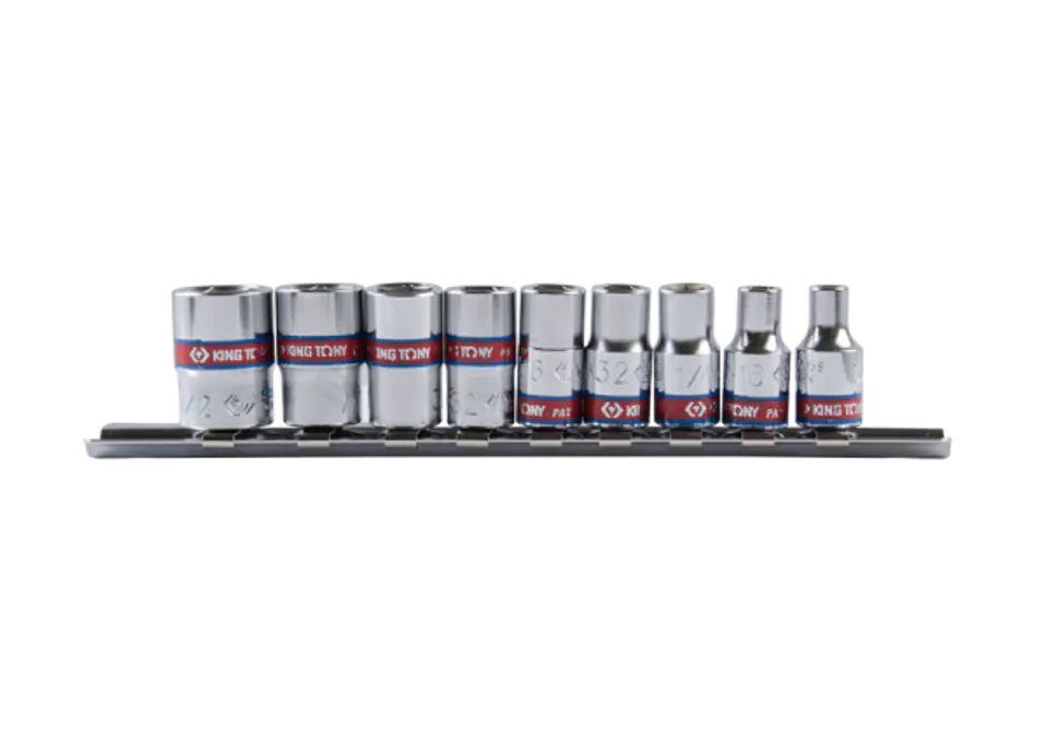 ZESTAW NASADEK CALOWYCH 1/4" 9cz. KRÓTKIE, 6-kąt. 5/32 - 1/2" SZYNA King Tony