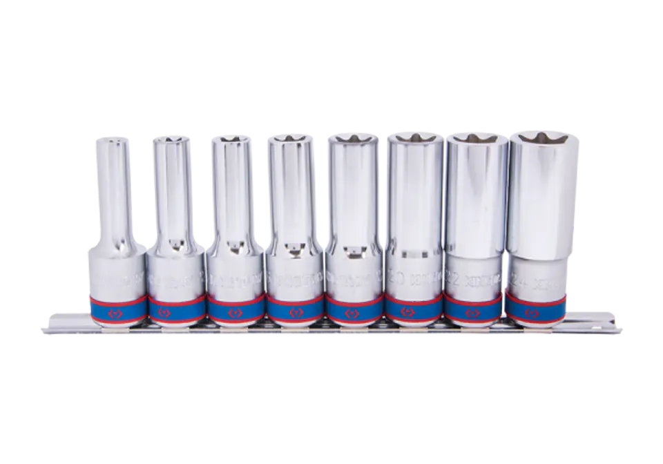ZESTAW NASADEK GWIAZDKOWYCH 1/2" 8cz. DŁUGIE E10 - E24, SZYNA King Tony