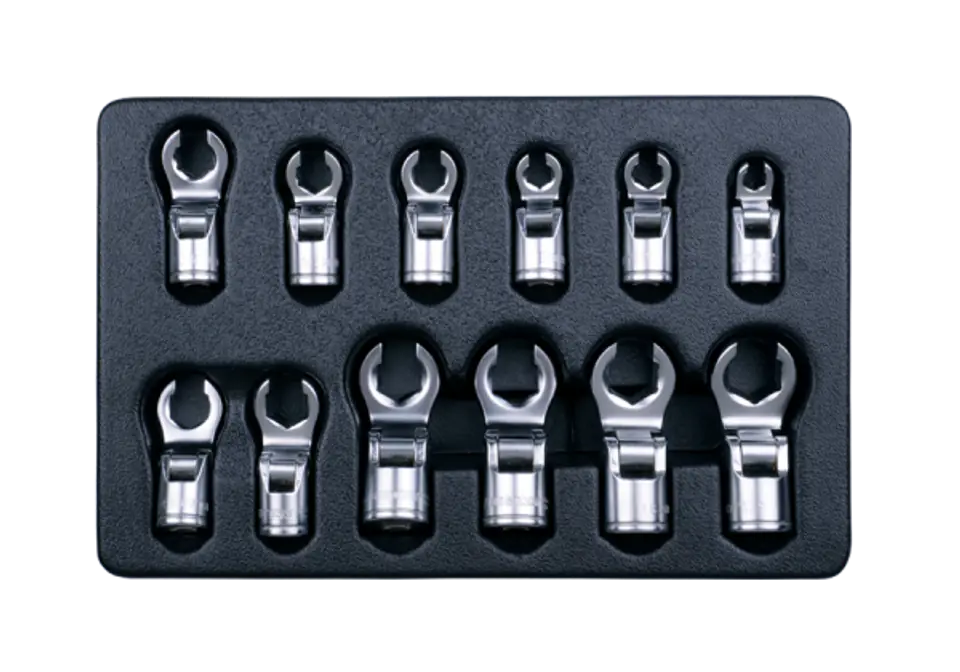 ZESTAW NASADEK PRZEGUBOWYCH DO PRZEWODÓW HAMULCOWYCH 3/8", 12 cz. 8 - 19 mm, WKŁĄD DO WÓZKA King Tony