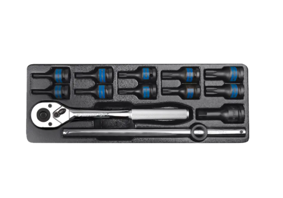 ZESTAW NASADEK UDAROWYCH 1/2" 13cz. KRÓTKIE TORX T20-T70 Z AKCESORIAMI, CHROM, WKŁAD DO WÓZKA"
