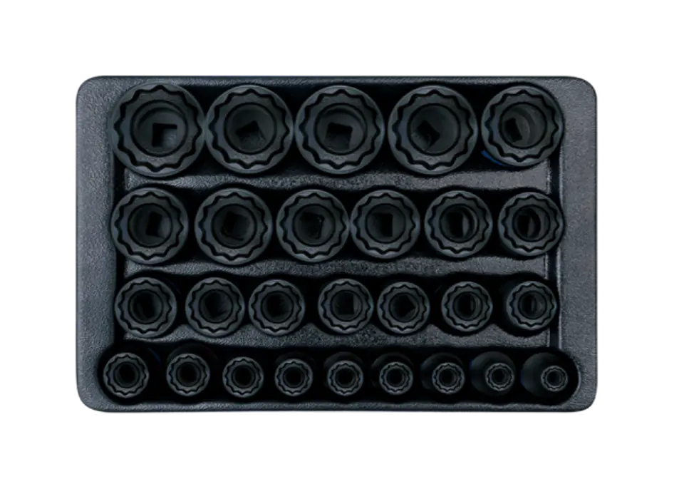 ZESTAW NASADEK UDAROWYCH 1/2" 27 cz. KRÓTKIE 12-KĄT, 8 - 36mm, WKŁAD DO WÓZKA"