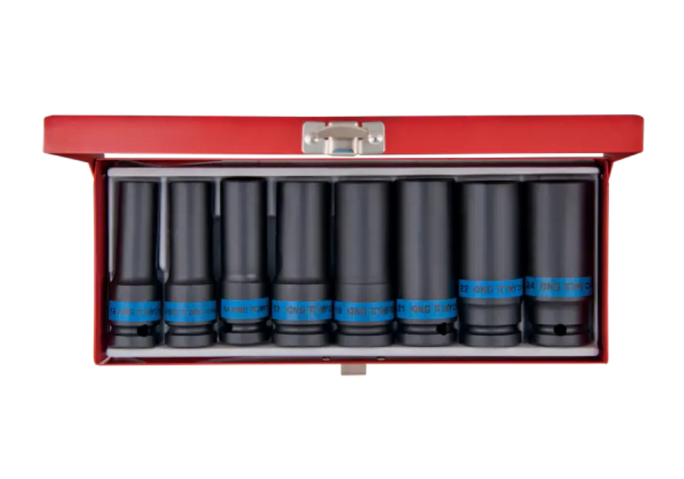 ZESTAW NASADEK UDAROWYCH 1/2" 8cz. DŁUGIE 6-kąt. 12 - 23mm, KASETA King Tony