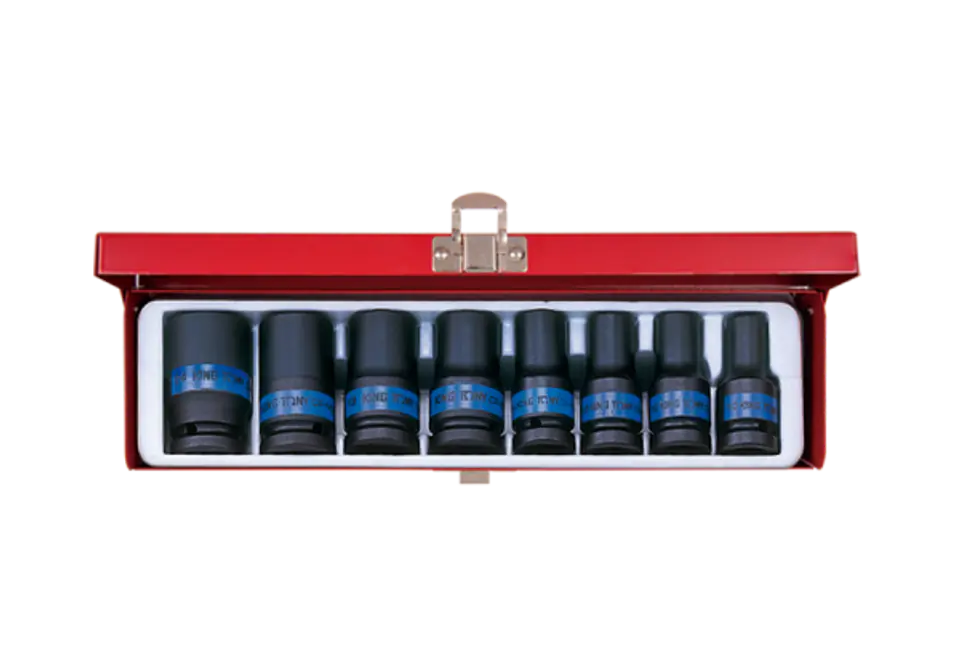 ZESTAW NASADEK UDAROWYCH 1/2" 8cz. KRÓTKIE, CIENKOŚCIENNE 6-kąt. 10 - 24mm, KASETA King Tony