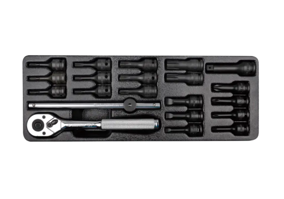 ZESTAW NASADEK UDAROWYCH 3/8" 21cz. KRÓTKIE PH1-PH4, PŁASKIE 5.5-10, TORX T10-T60 Z AKCESORIAMI, WKŁAD DO WÓZKA King Tony