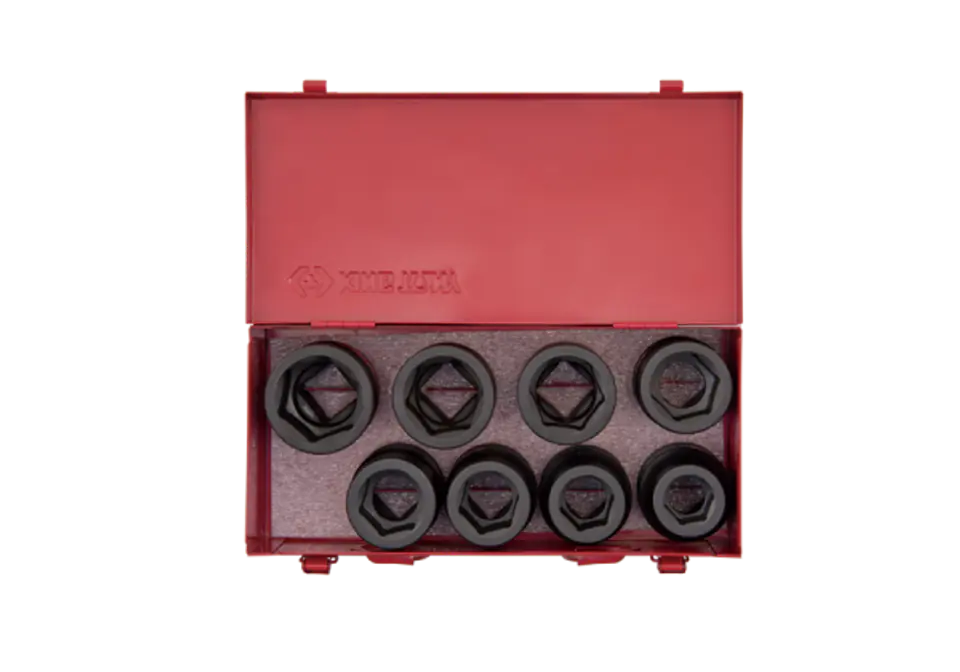 Zestaw krótkich nasadek udarowych 1" King Tony. W metalowej kasecie znajdują się nasadki w rozmiarach calowych 15/16", 1-1/16", 1-3/16", 1-1/4", 1-5/16", 1-7/16", 1-1/2", 1-5/8" Karta produktu - 8410SP