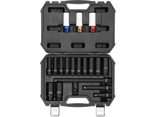 Zestaw nasadek udarowych długich z napędem AS-Drive 1/2" (12,7 mm). Wykorzystywane w serwisach samochodowych, mechanicznych, przemysłowych i gospodarstwie domowym.