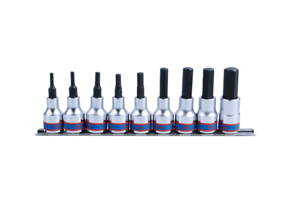 ZESTAW NASADEK Z KOŃCÓWKĄ HEX 1/2" 9 cz. DŁUGIE 4 - 17mm ZESTAW NA SZYNIE King Tony