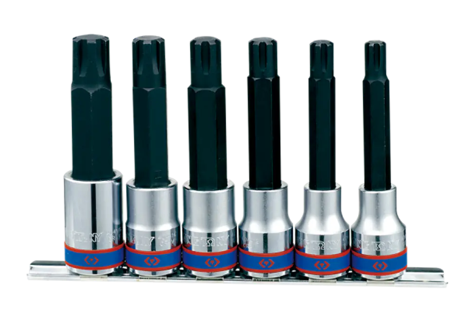 ZESTAW NASADEK Z KOŃCÓWKĄ RIBE 1/2" 6cz. DŁUGIE M9 - M16, SZYNA, King Tony