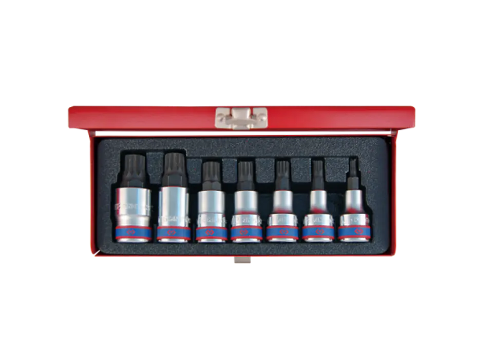 ZESTAW NASADEK Z KOŃCÓWKĄ SPLINE 1/2" 7 cz. KRÓTKIE M6-M18 KASETA King Tony