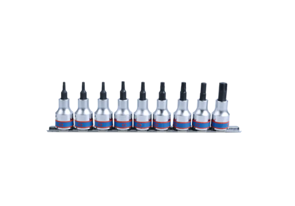 ZESTAW NASADEK Z KOŃCÓWKĄ TORX 1/2" 9 cz. KRÓTKIE T20 - T60 ZESTAW NA SZYNIE King Tony