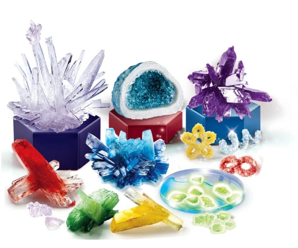 - Kompleksowe laboratorium naukowe z wieloma substancjami do tworzenia niesamowitych kolorowych kryształów gigantów o różnych kształtach!