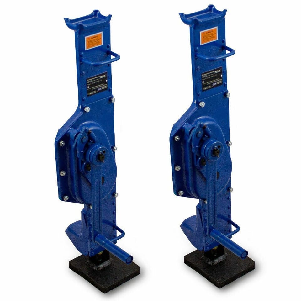 Warsztatowy podnośnik korbowy cechuje się dużą wytrzymałością na obciążenia aż do 10 ton każdy. Posiada stabilną podstawę oraz posiada podwójną zapadkę i składaną korbę. Podnośnik należy używać na stabilnym podłożu. Niezastąpiony w warsztatach i halach montażowych.