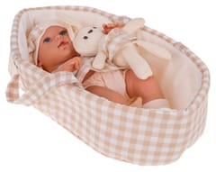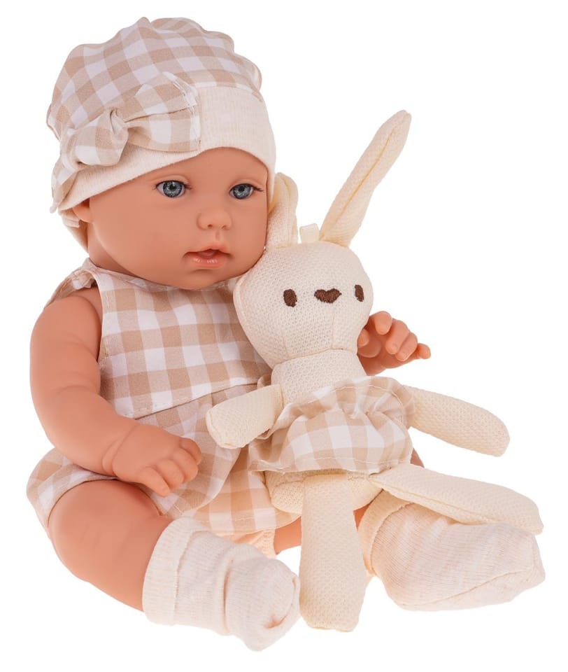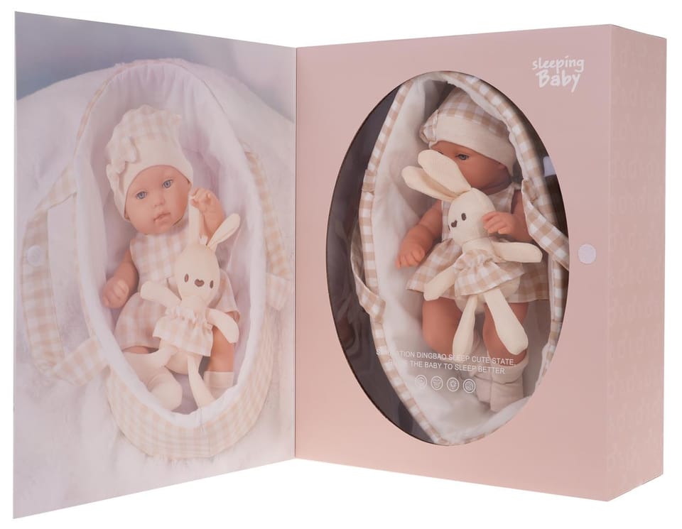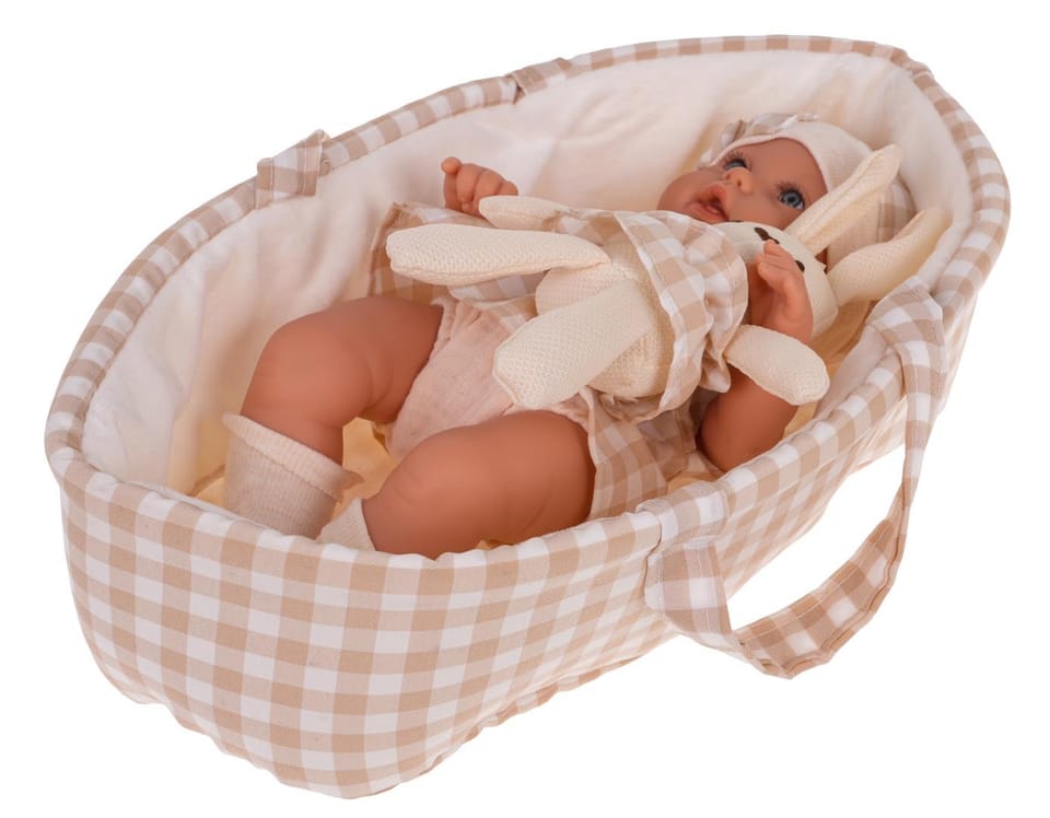 - śliczna lalka bobasek, - kosz do przenoszenia, - przytulanka króliczek, - opakowanie idealne na prezent.