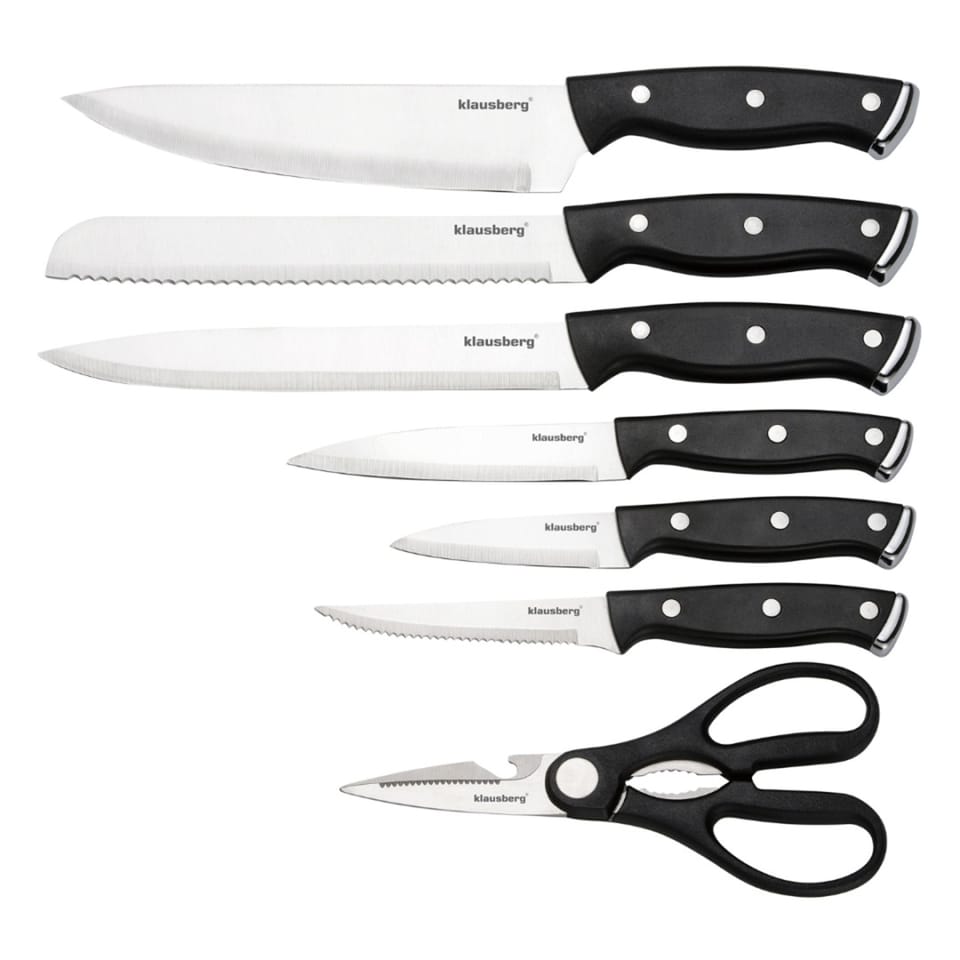 Klasyka, która robi robotę – KLAUSBERG KB-7985 to kompletny 13-elementowy zestaw noży do każdej kuchni. Ostrza ze stali nierdzewnej, solidne nitowane rękojeści oraz stojak z wbudowaną ostrzałką gwarantują wygodę, trwałość i porządek na blacie. W zestawie znajdziesz aż 6 noży stekowych, idealnych do rodzinnych posiłków, oraz nożyczki kuchenne z otwieraczem i dziadkiem do orzechów.
