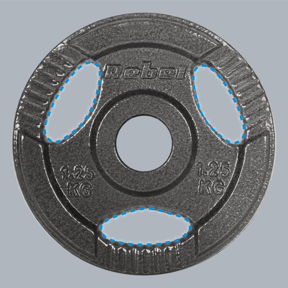 Obciążenia żeliwne Rebel Acrive posiadają trzy odpowiednio wyprofilowane uchwyty, które umożliwiają wykonywanie różnorodnych ćwiczeń siłowych bez potrzeby dodatkowego sprzętu. Dzięki nim możesz używać obciążeń jako hantli do przysiadów, wypadów, martwego ciągu czy wyciskania nad głową. Ułatwiają one także szybką zmianę obciążeń na gryfach. Ergonomiczne uchwyty minimalizują ryzyko kontuzji, zapewniając pewny chwyt nawet podczas najbardziej wymagających ćwiczeń.
