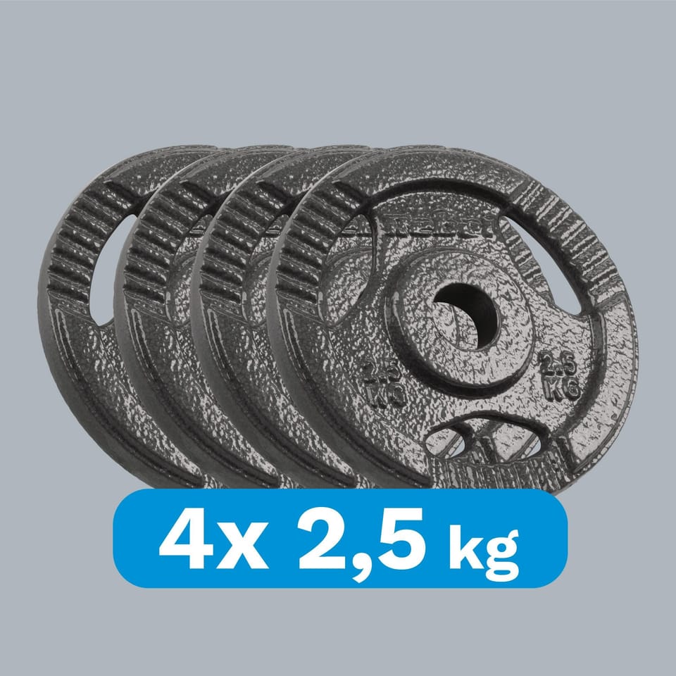 Zestaw obciążeń żeliwnych Rebel Active składa się z 4 talerzy o wadze 2,5 kg każdy, dzięki czemu z łatwością dostosujesz trening do własnych możliwości. Jest to idealne rozwiązanie do wzmacniania mięśni, czy treningu interwałowego zarówno dla osób początkujących, jak i bardziej zaawansowanych.