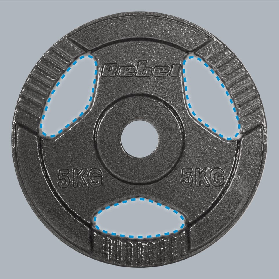 Obciążenia żeliwne Rebel Acrive posiadają trzy odpowiednio wyprofilowane uchwyty, które umożliwiają wykonywanie różnorodnych ćwiczeń siłowych bez potrzeby dodatkowego sprzętu. Dzięki nim możesz używać obciążeń jako hantli do przysiadów, wypadów, martwego ciągu czy wyciskania nad głową. Ułatwiają one także szybką zmianę obciążeń na gryfach. Ergonomiczne uchwyty minimalizują ryzyko kontuzji, zapewniając pewny chwyt nawet podczas najbardziej wymagających ćwiczeń.