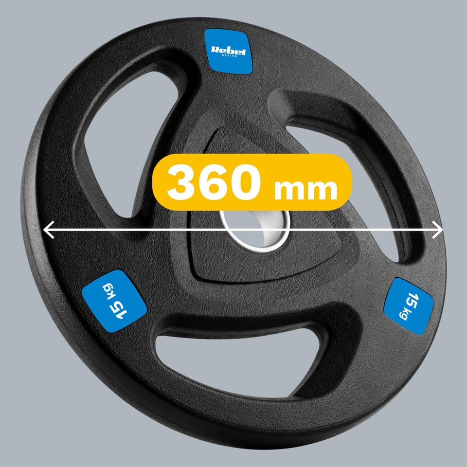 Zestaw obciążeń żeliwnych gumowanych 2x15kg, otwór olimpijski 51mm, REBEL ACTIVE