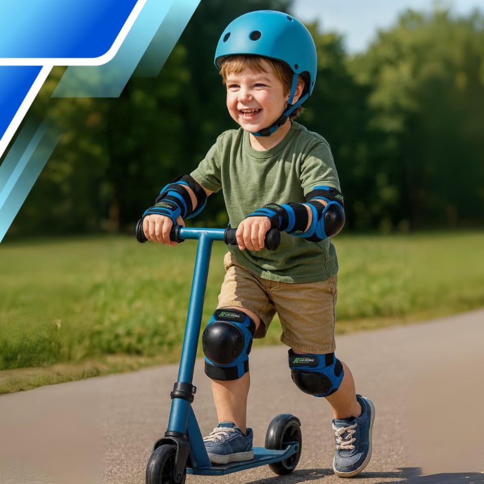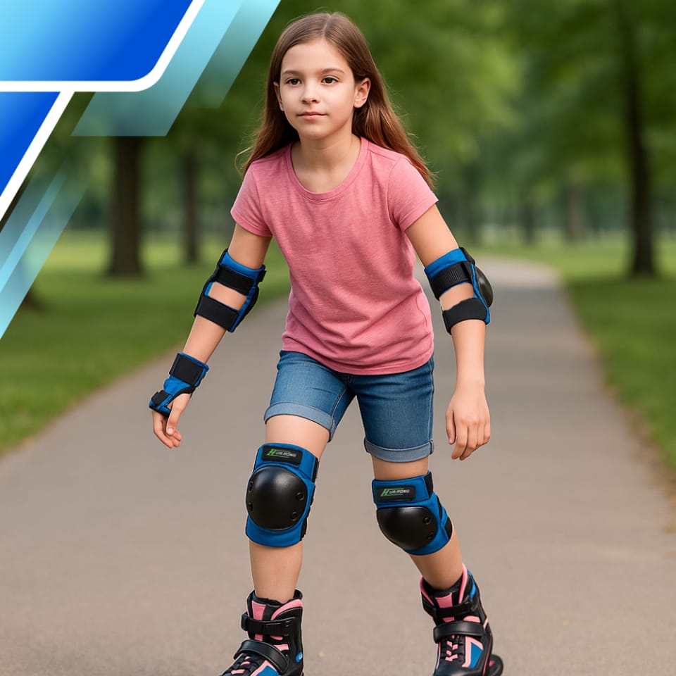 Przedstawiony solidny 3- częściowy komplet ochraniaczy na łokcie, kolana i nadgarstki, to wspaniały design, znakomita jakość w atrakcyjnej cenie, a także wysoki poziom ochrony i bezpieczeństwa podczas jazdy na hulajnodze,rowerze, łyżworolkach, wrotkach czy deskorolce.