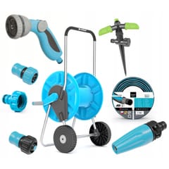 Wąż ogrodowy Cellfast Smart ATS 3/4" 25m- Wąż 3 warstwowy- Wąż nie skręcający się, odporny na powstawanie supłów blokujących strumień wody- Oplot trykotowy (ATS VARIANT™) wykonany z poliestrowej przędzy najwyższej jakości- Odporny na promienie UV oraz osadzanie glonów wewnątrz węża- Wytrzymały i elastyczny- Zakres temperatur –20/+60°C55-260 CELLFAST ALUPLUS wózek na wąż 1/2" 60m- Zapewnia wygodne przewożenie i przechowywanie węża- Gumowany uchwyt rączki gwarantuje pewny chwyt oraz wygodę użytkowania- Wszystkie elementy wózka montowane są na zatrzask bez użycia narzędzi- Ergonomiczne wygięcie rączki zapewnia wygodę osobom o różnym wzroście- Duże koła sprawiają, że wózek prowadzi się z łatwością nawet po bardzo nierównym podłożu- Dzięki zastosowaniu aluminiowej konstrukcji wózek jest lekki i całkowicie odporny na korozję- Narożne połączenie węża zapobiega jego wypaczaniu i przekręcaniu podczas nawijania i rozwijania