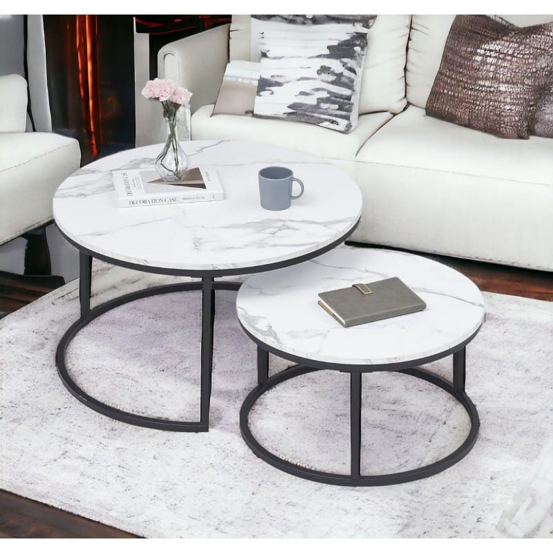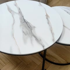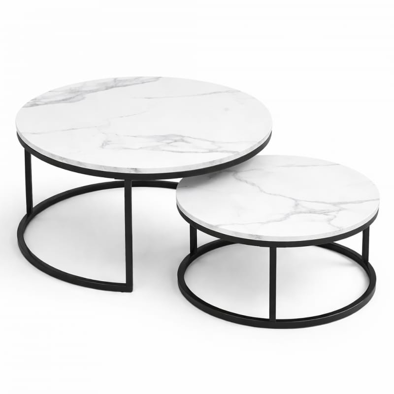 Zestaw okrągłych stolików kawowych 2w1 biały marmur 60 i 80 cm STL14